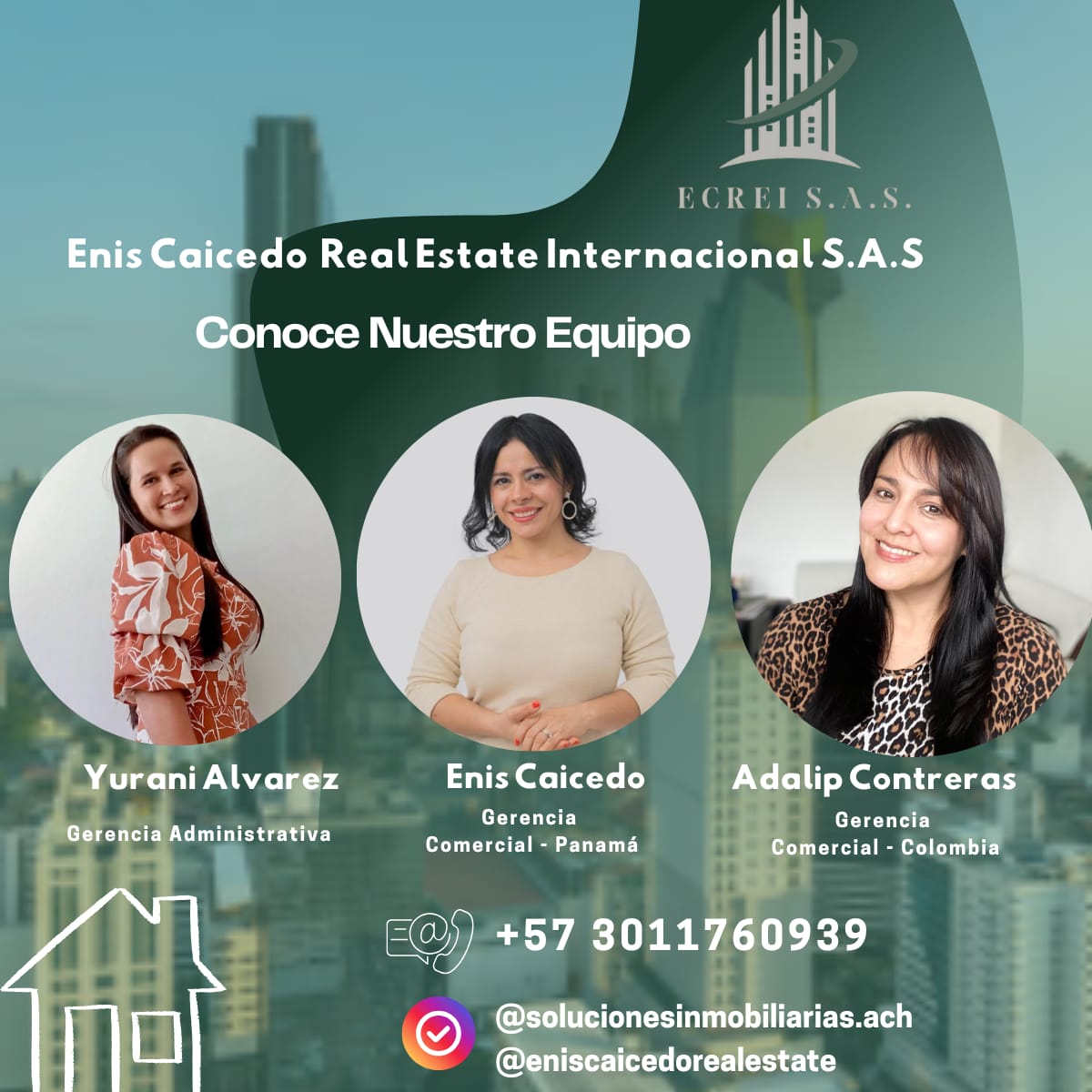 ECREI S.A.S. cuenta con la Licenciada, Enis Caicedo, quien además de ser agente inmobiliaria idónea con licencia número PN-5884, en Panamá también es abogada con idoneidad 23771, y con una amplia experiencia legal, liderará todos los aspectos relacionados con contratos, regulaciones locales, cumplimiento legal y visas migratorias.